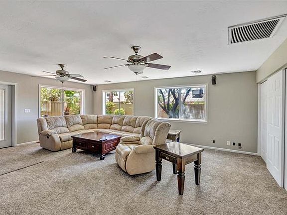 Are you looking for a new home where you can legally park your 40ft RV in your backyard? Then don't look any further! This 3 br/1.75 ba home has been beautifully updated with new kitchen cabinets, stainless steel appliances, granite slab counter tops, peninsula island opening to the dining/family room with 2-way fireplace, new ceramic tiles, new carpet in formal living and bedrooms. A large media room adds a great bonus to this well maintained home! Laundry room with built-in cabinets, plantation shutters in bedrooms, double french doors in master. Both bathrooms have been updated. Nicely landscaped front and back with lush grass and mature trees. Situated on a corner lot close to shopping, dining and freeway. This is a MUST SEE!