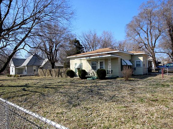 Welcome home to 2303 West Phelps Street in Springfield. This immaculate bungalow is nestled on a corner lot and has great outdoor space. Front yard is trimmed with chain link fencing and has covered front porch. Windows on front of home complete the look with adorable metal awnings. Back yard has privacy fence and patio area. Inside front door you are welcomed by nice size living room with hard wood flooring. If you enter from side door you enter into kitchen that has open floorplan with dining room. Kitchen has great cabinetry and half wall separating dining area. Dining room has doors opening onto patio. Bedrooms are split and located on each side of dining room. Master is on front side of home and has full bath. Another full bath is located just off laundry area inside back