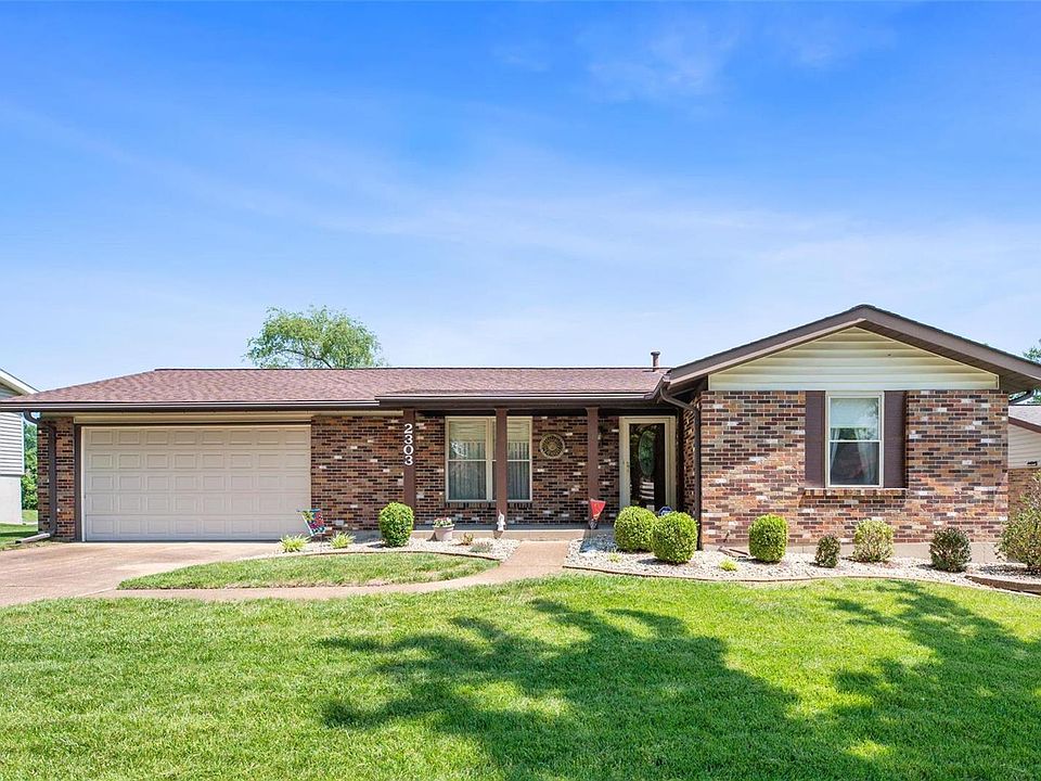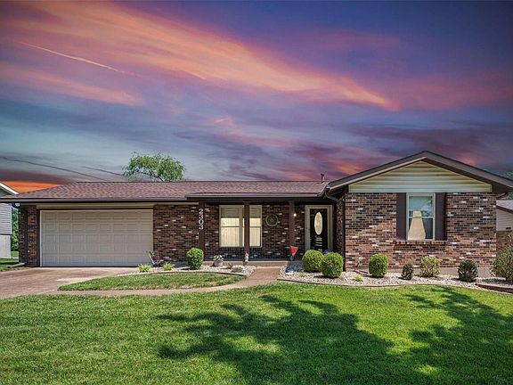 This lovely brick ranch is ready to be your next home! A spacious family room offers a comfortable space to relax and entertain. Head through to the gorgeous updated eat-in kitchen, which offers stainless appliances, quartz countertops, and a custom pantry designed by St. Louis Closet Company. Step outside from the kitchen to enjoy outdoor dining on the deck, overlooking the large, level backyard and patio. The primary bedroom has a full ensuite bath and the two additional bedrooms share the hall full bath. Downstairs, the walk-out lower level gives you room to grow. Some notable updates include a new roof in 2015, HVAC replaced 2019, and water heater 2023. The oversized two-car garage provides enough room for both parking and storage. To top it off, you won’t need to go far for summer fun with subdivision community features including pool, tennis court, and sand volleyball!
