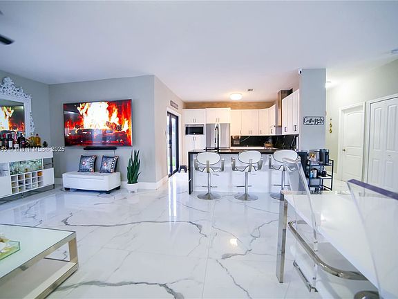 This 5-bedroom, 4-bath home offers luxury and convenience. The first floor features stunning white and gray porcelain tile, an open layout, and a gourmet kitchen with a granite waterfall countertop and stainless steel appliances. Two bedrooms, including a junior suite, are on this level. Upstairs, a staircase with black marble flooring and a glass railing leads to the main suite, which includes a bath with a stand-up shower, jacuzzi tub, dual sinks, and walk-in closets. Just 2 Months deposit to move in. Courtesy of Equitable Company Realtors.