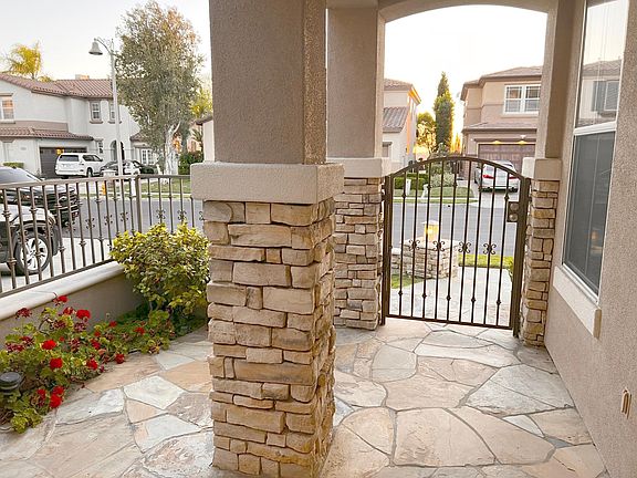 Located near the beautiful Mission Viejo lake and in an excellent school district, this spacious 5 bedroom, 3 bath floorplan has nearly 3,000 sqft of interior living space in the gated Stoneridge community. The house features include gated front porch , formal entry with ceramic tile flooring, dual-glazed windows with custom window coverings, formal dining & living rooms, and a convenient first floor bedroom with bath. The kitchen features a large granite center island with bar seating, designer quartz countertops, custom backsplash with under-counter accent lighting, an oversized breakfast nook, and matching GE Profile appliances. The cozy family room includes a gas/wood burning fireplace with raised hearth, cooling fan, and lots of windows to let in the natural light. The large private backyard features grassy area for kids to play, as well as a patio to entertain with built-in bbq, refrigerator & bar seating. Upstairs, you will find the spacious master bedroom featuring dual walk-in closets, mirrored wardrobe doors, and en-suite bath with dual sinks & separate soaking tub. There are three additional bedrooms, along with a laundry room with sink & storage. Dual A/C, big 3-car tandem garage & much more!