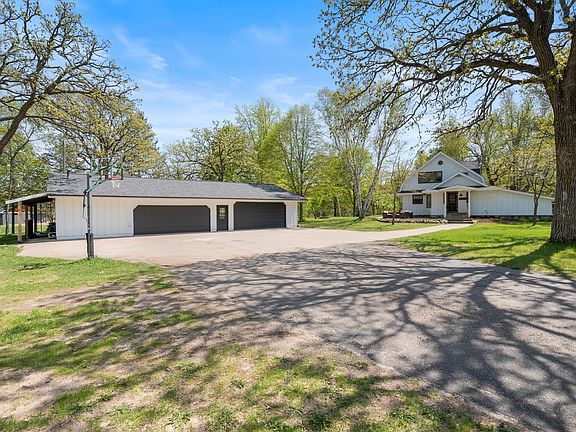 Delightfully updated, light and airy custom 2-story home with modern flare in the heart of Big Lake. Nestled on over 6 acres allows you to step into an expansive rural retreat with mature foliage. This well-designed home is generous to flowing spaces, featuring a fully renovated, spacious kitchen, new stainless steel appliances, new countertops, new white enabled cabinets with built-ins, new backsplash & separate hearth area. New flooring throughout and a dedicated main floor laundry room. The upper level opens to a loft, 3 additional bedrooms and a full bathroom. Finished lower level with a large family room w/fireplace and additional bathroom. Freshly painted exterior and interior, new roof on home & garage, new Connexus' Energy Saver HVAC System and efficient 100-gallon stainless water heater, 4-stall heated garage w/shop, WiFi enabled openers and separate outbuildings for additional storage!