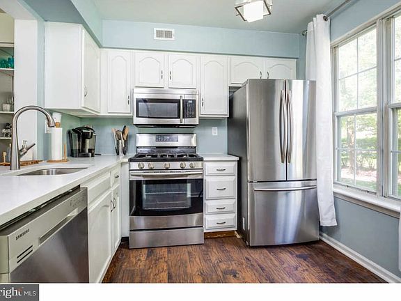 MOVE RIGHT IN to this stunning 1st floor condo in the desirable, vibrant community of Laurel Creek. This 2 bedroom, 1 bath home boasts all kinds of upgrades!! The kitchen has incredible white quartz counters, white cabinets and stainless steel appliances. There is dark wood, wide individual plank, waterproof laminate throughout the home. The hot water heater and HVAC are brand new!! The bathroom has been nicely upgraded with stylish tile and vanity. The foyer entrance leads you into a nice sized living room with lots of natural sunlight coming through the sliding glass doors. The kitchen to your right has a large pass through opening to ensure the cook isn't left out of the gatherings in the living room. The spacious dining room can fit a sizable table for your dinner parties. The large master bedroom with walk in closet is at the end of the hall. The second bedroom, the laundry/utility room, patio and an attached storage space complete the home. The interior is painted in fresh neutral colors. This home offers an easy commute into Philadelphia and access to all major roadways. Don't miss out on this lovely home!