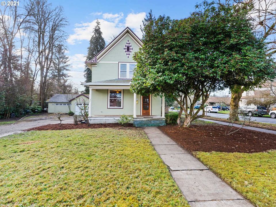 Charming 1900's home in Old Town Forest Grove. Full of character and original charm with room to make it your own! Primary bedroom with walk-in closet and private deck. Gleaming hardwoods and large windows throughout. Family room with bamboo floors and outdoor access. Sizable lot with fenced yard and additional covered deck for year-round entertaining. Detached 3 car garage and shop. Easy commute to Intel and close proximity to Pacific University, Forest Grove City Library, and Rogers Park.