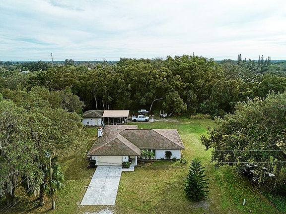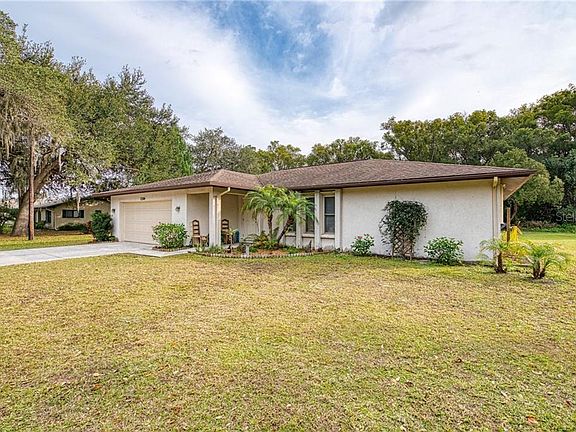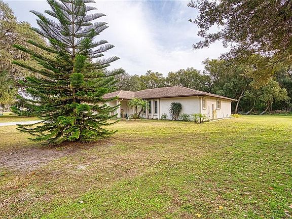 Are you searching for a home that isn't your typical cookie-cutter home? A home in a neighborhood without any HOA or CDD fees? Well, you've found it! Welcome to this beautiful 3 bedroom 2 bath home with lots of upgrades and sitting on over HALF AN ACRE of peaceful, quiet land. Driving up to this home, you'll notice the long driveway, large front yard, nice landscaping, mature oaks, and palm trees. You will also notice that the distance between the homes will allow privacy and a peaceful serene feeling. HOUSE PROPANE GENERATOR, AC; 2016, ELECTRIC HOT WATER HEATHER; 2015. NEW DOUBLE-PANE WINDOWS WITH SHUTTERS as well! Entering the home through the foyer, you'll be greeted with newer waterproof vinyl plank flooring and newer carpet. The living room to the right of the foyer has lots of natural light flowing through and is spacious as well. The dining area is located next to the kitchen and makes mealtime easy. The kitchen has BRAND NEW STAINLESS STEEL APPLIANCES, newer laminate countertops, breakfast bar with a passthrough to the Bonus Room, and a pantry. Across from the kitchen in the family room, you'll want to cozy up to the gorgeous WOOD BURNING FIREPLACE. The LARGE BONUS ROOM behind the kitchen and dining room would make a great exercise room, craft room, office, game room -- it's your choice! All of the bedrooms have WALK-IN CLOSETS. You will want to relax in the master bedroom that's located next to the dining area and separate from the other bedrooms with the home's split design. The en-suite master bathroom has lots of counter space and a separate area with the toilet and shower. There's an exterior 2-car garage located in the HUGE and PRIVATE backyard with a lean-to carport. You can park your RV or boat under this lean-to or just an extra vehicle. The garage has a workshop inside along with a full kitchen and bathroom. At one time, this was an apartment/mother-in-law apartment and can be converted back, if needed. PEACE is the word that I would use to describe this property! This home is ready for you to move into and enjoy! Call today before it's gone!