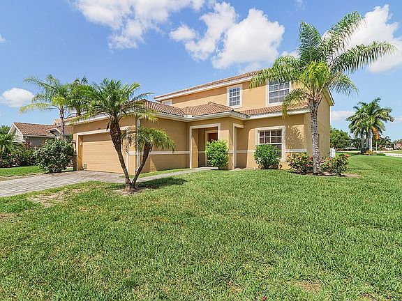 The living is easy in this generously proportioned waterfront residence with an impressive spacious floor plan that is perfect for a big family. This 3256 sq/ft 2 story home encompasses 5 spacious bedrooms, 3.5 delightful bathrooms, living room, large family room, formal dining room and a very spacious upstairs bonus 2nd living room area. The second floor large master bedroom grand suite has a bathroom that features a separate soaking tub and shower with dual vanities along with access to balcony with lake views. Such a variety of unique FEATURES like oversized lake front corner lot, wood cabinets, Corian countertops, two newer AC units, newer water heater, white picket fence in the back, great curb appeal, paver driveway, custom wood stairs and SO MUCH MORE! Located in Heatherwood Lakes in the very desirable SW Cape Coral area. HOA fees are low and include gated entrance, oversized community pool with clubhouse and a playground! Easy access to major roads with close proximity to shopping, dining & entertainment. Priced to sell quickly so be sure to schedule your showing today!