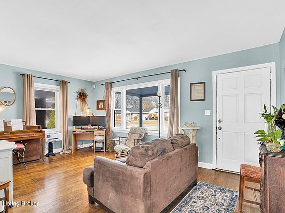 Covered front porch opens to a nice size living room with a large picture window and hardwood laminate flooring. Dining room area is open to an adorable updated kitchen complete with stainless steel appliances.