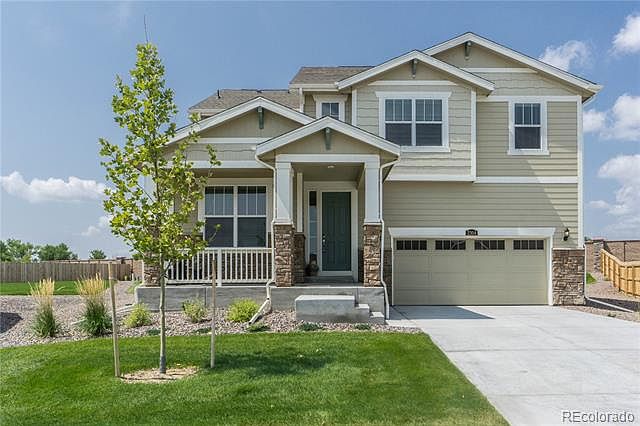 Fabulous Huntington floor plan not even two years old! Located in a Cul-de-sac. and does not back to a neighbor. Huge, fully landscaped back yard to enjoy along with a massive covered back patio! Open floor plan with beautiful gourmet kitchen, granite counter-tops, SS appliances, gas stove and more. Study, formal dining w/butler's pantry to kitchen,loft, Jack-n-Jill bathroom, 2nd floor laundry rm. and spacious master suite. Full unfinished basement with endless potential. 3-car garage with garage service door. Conveniently located to major highways, the new Top Golf, Denver Premium Outlet Mall, dining, entertainment, etc. This home also includes energy efficient technologies & modern conveniences. Energy Star Certified and HERS Rated. Buyer to take assignment of solar lease upon closing. Seller is willing to offer $5,000 in Seller Concessions.