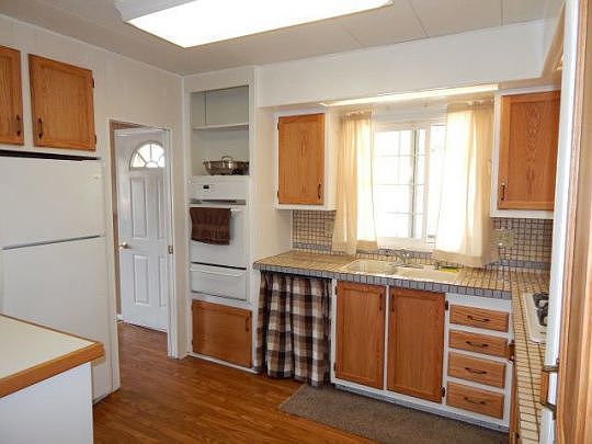 Move in Ready Home! Fantastic, completely updated 2 bedroom 2 bathroom mobile home. New paint, new flooring, new kitchen cabinets. New refrigerator, washer and dryer. New composition roof. Dual pane windows, covered front porch, convenient location with low maintenance.