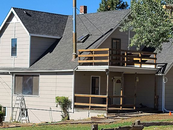 Large Beautiful Farmhouse with 10 acres close to town. Set up for horses, 4-H, or small hobby farm. 5 bedrooms, 2.5 bathrooms, office, sauna, rec room, hobby room, basement with work rooms, 3 car garage with additional finished square footage above garage, bunk house, other outbuildings. Nice barn, cross fenced. 2 domestic wells, New roof 2017, house needs updates, but in solid shape. Located on a dead-end road.