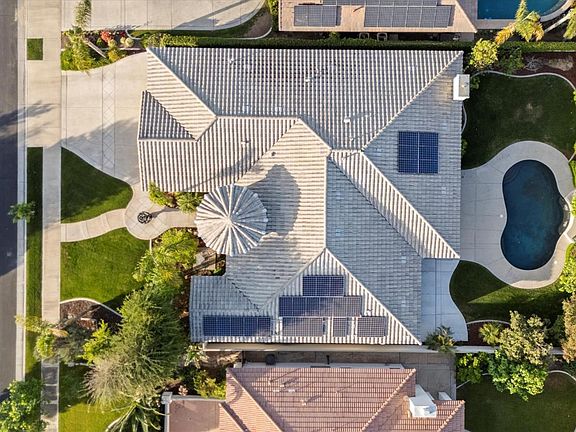 Stunning Tuscan style home in Grand Island Seven Oaks with pool and OWNED solar. Four very spacious bedrooms plus an office and 3 bathrooms. Extensive amenities throughout this open split wing floor plan including granite island kitchen with custom backsplash, ss appliances with commercial grade hood, Luxury Maple Hardwood Floors, upscale matching cabinets and energy efficient lighting throughout the home. Spacious primary suite with walk in closet, travertine stone floor in bathroom with oversized shower and relaxing jetted tub. Entertainers backyard with a patio overlooking picturesque landscaping and waterfall pool. Enjoy a glass of wine and fresh fruit from one of the dozen mature producing fruit trees. Lots of newer upgraded items including exterior light fixtures, pool pump + filter, water heater, EV charger, patio fans, shoe closet, bidet, dishwasher, plus smart irrigation system and thermostats. Beautiful stone entrance with great curb appeal truly makes this home stand out.