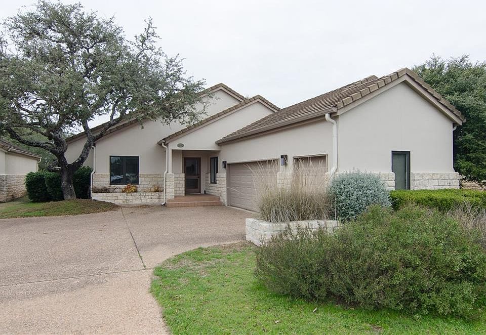 Amazing opportunity to buy a stunning garden home in the gated/guarded Barton Creek Lakeside Community. Deep in the Hill Country, & Homeowners can be a part of the private golf course & country club. The home has a great layout, beautiful mesquite wood floors, new dishwasher, stone fireplace, spacious master, including fresh paint throughout. The patio backs up to serene common area & the view is amazing! Great amenities such as boat ramp, marina, golf course, tennis, 24 hr. manned security. Perfect home for a golf fanatic or vacation rental spot. The golf course is designed by Arnold Palmer!