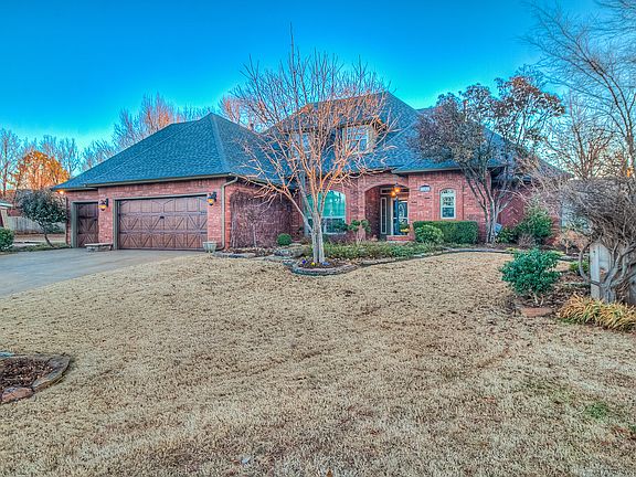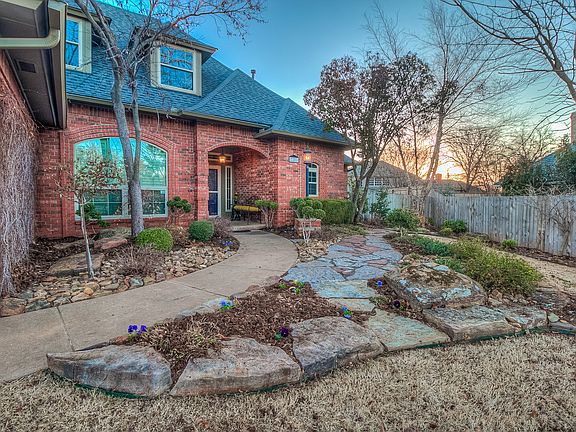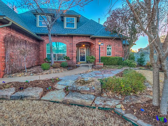 This beautiful home in Timberdale offers a secluded location on a culd-e-sac, nearby shopping, close to highways & Edmond schools. The split floor plan has 2 living areas, 2 dining areas, 4 bedroom, 2 1/2 baths, large open kitchen with island & an inside utility room. The master suite has recessed ceilings, gorgeous clawfoot tub, custom double sinks, large walk-in closet with built-ins & it’s own deck accessed though the master’s french doors. The inside has rich tones with hard wood floors, crown molding, tall ceilings, custom countertops & tons of built in storage spaces. The updated large windows throughout boast gorgeous views of the custom, lush landscape design that surrounds the home, including trees, plants, flowers, dozens of large stones, flagstone pathways and more. The expansive back yard is a wonderful retreat, featuring an outdoor fire place, another large deck and a covered patio. Call today to see this beautiful home!
