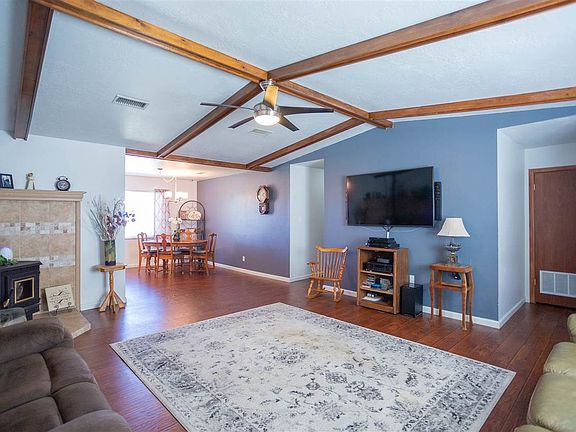 Beautiful well loved 4 bedroom home sitting on 2.5 acres. This home shows love with custom built features through out. Interior features a master wing, walk in closet, secluded from 3 bedrooms and additional bathroom. Exterior has a carport, garage, shop, well house, covered porch, 2 pecan trees, 2 apple trees, 1 plum tree, and pine trees. This home won't last long.