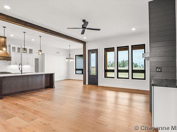 This is a fantastic custom, modern farmhouse-built home! It's located close to Cheyenne and has easy access with a paved road. The sprawling ranch style design with 1,950 square feet on the main level and Basement had the following completed: framing, rough electrical, rough plumbing. The oversized 4-car garage is a bonus, providing ample space for vehicles, storage, and more. The covered front porch and patio sound like lovely areas to relax and enjoy the surrounding rural setting. The 10' flat ceilings and floor-to-ceiling finishes add a touch of elegance and sophistication to the home. The gourmet kitchen with a walk-in butler pantry is a great feature for those who enjoy cooking and entertaining. It's wonderful to know that the home is built with exceptional quality finishes, ensuring a high level of craftsmanship and attention to detail. If you're interested in viewing this home, contact the listing agent.