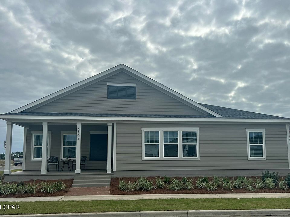 This low-maintenance lock-and-leave home is move-in ready in the popular waterfront community of SweetBay! This cottages are perfect if you're ready to stop doing yard work and enjoy the phenomenal lifestyle that SweetBay has to offer! The Magnolia III plan by Harris Doyle Homes is a thoughtfully designed open plan home with large covered front and rear porches and attached 2-car carport (optional garage) that could also be used for entertaining. This home includes granite countertops, stainless appliances and luxury vinyl plank flooring throughout the main living areas. The primary bedroom features a large walk-in closet and tile shower. SweetBay is a walkable and golf cart friendly community with unrivaled amenities: dock and boathouse with North Bay access for kayaking, paddle boarding, and fishing, parks, resort pool complexes, basketball and sports court, miles of trails, and planned future amenities including a town center and marina (groundbreaking this year)! New home buyers even get priority access to top-rated University Academy!