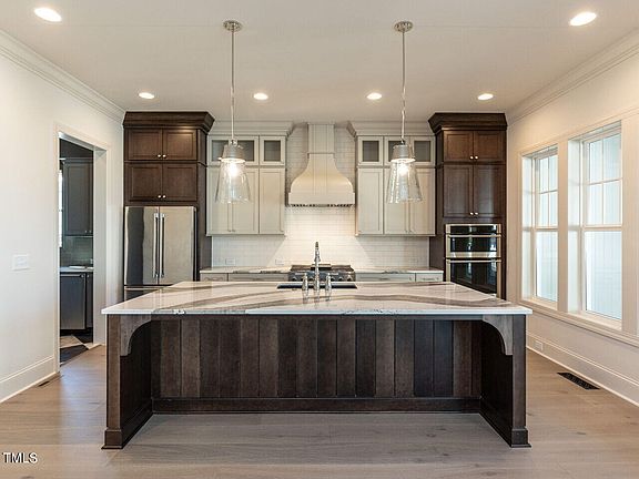 Introducing the timeless elegance and modern luxury of this exquisite new construction 2-story traditional house in the heart of Budleigh Subdivision walking distance to The Village District/Cameron Village. This house offers a perfect blend of classic architectural charm and contemporary amenities, creating and inviting environment for the discerning homeowner. Upon entering the house, you are immediately struck by the sense of spaciousness and warmth that emanates from the open-concept floor plan. The foyer boast soaring 10' ceilings and gleaming hardwood floors that flow seamlessly throughout the main level, setting the stage for the sophisticated design elements that define the interior. The 5'' wide plank ''UltraWood'' floors are more durable than the typical hardwood floors. The thoughtful layout also includes a formal dining room, providing an ideal setting for hosting memorable dinner parties and special occasions. A private study/office/bedroom on the main level offers a quiet retreat for work, study or guest with natural light, making it the perfect space for productivity and focus. A convenient mudroom with built-in storage and a powder room completes the main level, providing practical features for everyday convenience. Ascending the staircase to the second floor, you will find a luxurious primary suite that epitomizes comfort and sophistication. The primary bedroom boasts gleaming hardwood floors, and a spacious walk-in-closet attached to the laundry room. The spa like primary bath is a true sanctuary, featuring a soaking tub, a walk-in shower with custom tile work, and two separate vanities with designer fixtures. The second level also includes two additional generously sized bedrooms, each offering ample closet space and easy access to a beautifully appointed full bathroom with designer finishes and fixtures. A conveniently located laundry room with built in cabinetry and a utility sink adds to the level of practicality and comfort that defines this exceptional house. The third floor offers a large bonus room with a wet bar, beverage cooler, and ice maker a bedroom with full bathroom plus walk in attic storage. Stepping onto the back screen porch, you are greeted by a meticulously landscaped outdoor space, providing a private oasis for relaxation and recreation. Irrigation in all sodded areas. The expansive covered porch offers and ideal setting for al fresco dining and entertaining. A porte cochere plus a 23' x 23' detached 2 car garage give ample storage for vehicles, bikes and yard equipment.