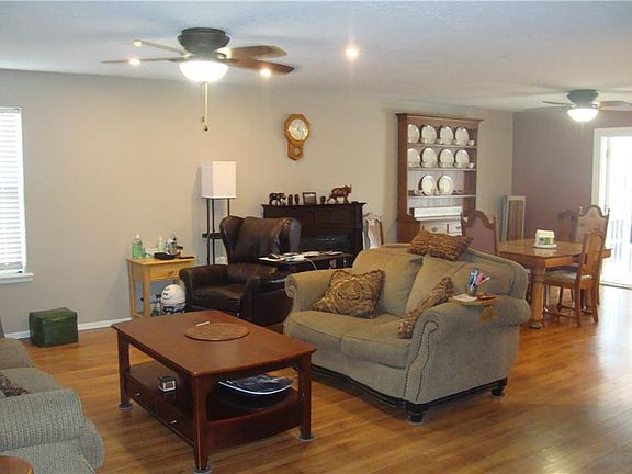Fresh touches throughout this 3 bedroom, 1 3/4 bath, with year-round sunroom thru French door access. The wood fence is well-constructed with solid metal post and supports, wood was freshly stained this spring. Air lock front entry. Built-in gas log fireplace is the centerpiece of the large living/dining/kitchen open floor plan with laminate flooring, ceramic tile kitchen, and granite tile countertops. New LED lighting accentuates these areas plus ceiling fans. Kitchen cabinets newly painted as well. All interior painted surfaces have been refreshed this winter, highlighted with white trim and baseboard. Double Sliding barn doors in the hallway are a great accent for the washer/dryer step-saving location near bedrooms. A brand new large ceramic tile shower in the master with custom shower doors and new carpet in large master suite. Recent full house generator is a great added feature. Sunroom has lots of light, air conditioning and new decorative gas log heat.