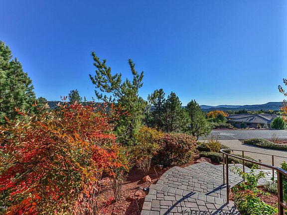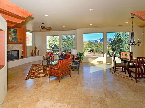 Stunning Red Rock Views through the walls of glass of this custom built home. Designed to capture Sedona's famous red rocks while relaxing in your spacious living room with warm fireplace. Designer touches throughout include upscale paint colors and window coverings. Gourmet kitchen with granite, Stainless steel appliances, and breakfast bar. Private patio off the kitchen. Master suite includes private deck and sitting area. Custom wood shutters. Luxury bath with beautiful granite , slate and tile. Beautifully landscaped. Seller has pride of ownership and it shows! Turn-key ready!!