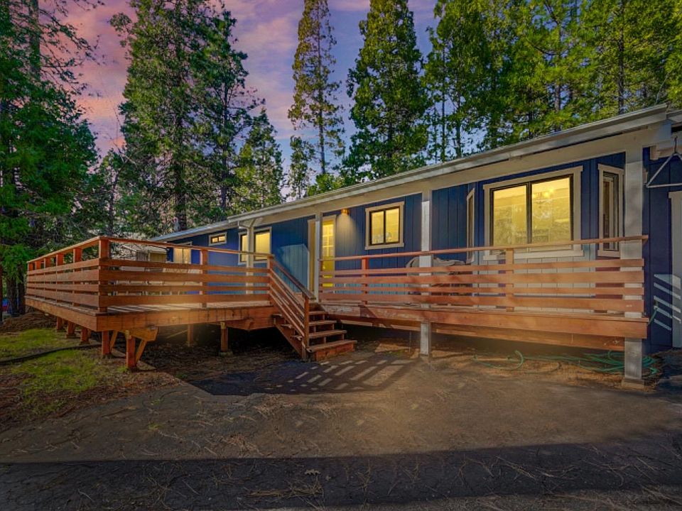 Introducing the turnkey cabin you've been dreaming of! Step into relaxation and natural beauty with an expansive front deck offering stunning treetop views and ample space to soak up the sun. This single-level gem nestled in the mountains boasts 3 bedrooms, 2 bathrooms, a 2-car garage, and over 1700 square feet of updated perfection. From top to bottom, this cabin has been meticulously updated, featuring recently painted interiors and exteriors that complement the custom pine countertops sourced from the front yard. Stone countertops, modern appliances, a newer HVAC system,Honeywell thermostat, newer deck, and flooring complete the picture of modern mountain living. Step inside to discover the charm of the dramatic open beam ceiling visible throughout the home and a stone hearth, perfectly accentuating the mountain theme. The spacious primary bedroom offers direct access to the exterior back deck, an oversized en-suite bathroom, and a host of other amenities.Two additional bedrooms, separated by a recently remodeled hall bathroom, provide flexibility for additional sleeping quarters, a home gym, or an office space. Beyond the garage, a playroom awaits, adding to the allure of this mountain retreat. Step outside through the living room slider and enter a serene landscape, where a winding stone stairway leads to a level area perfect for a fire pit or additional patio space, evoking a sense of peaceful tranquility. With great access to Highway 4, you'll have easy access to explore the scenic wonders of the area year-round, including nearby attractions like Murphys wine country, Big Trees State Park, and Bear Valley. Embrace the beauty and tranquility of mountain living in this meticulously crafted cabin retreat.