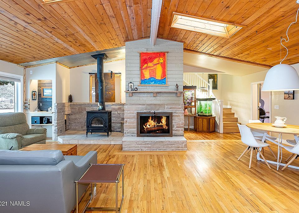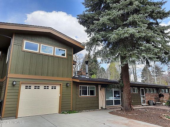 2 homes in one located close to downtown in Coconino Estates. Separate living space gives the new Owner the potential to rent out half the home or provides additional living space as inlaw or teen living quarters. 5 bedrooms (total), 3200 sqft, solid oak floors, vaulted ceilings, wood stove, fireplace, 2 furnaces, 2 water heaters (one is on demand), soap stone counter tops and sink. TONS of natural light with 8 skylights + 1 sun tube, RV Parking with cleanout, mature landscaping and a working irrigation well, situated on a large corner lot right around the corner from the community SWIMMING POOL! Main level has 3 bedrooms, 1.75 baths, laundry area, 1 great room with wood tounge and groove ceilings, 1 tv room, 1 large man cave(could be bedroom #6) and a 2 car garage. Vaulted ceilings in most downstairs rooms. TONS OF STORAGE (6 closets, not including bedroom closets) 2nd Level Addition (built in 2017) has great room, 2 large bedrooms, 1 full bathroom, laundry and small kitchenette and vaulted ceilings in every room. URBAN FARMETTE - 5 apple trees, 1 crabapple tree, 8 grape vines, walnut tree, peppermint, raised beds, most connected to the irrigation well! Every part of the home has been remodeled and updated, including all vinyl windows. This home has city utilities AND a well! Owner is licensed Realtor(Agent) in Arizona contact OWNER direct at 928-699-0206 - mattbrydenthal@yahoo.com (Owner will cooperate with other agents)