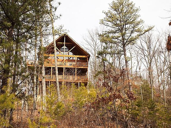 Large log cabin with a fantastic view. The 4 main bedrooms have their own en-suite bath and the loft bedroom has a half bath. There are 2 big decks and lots of glass to enjoy the view. The cabin sleeps 14 but there is plenty of room for additional beds so revenues can increase easily. This cabin is an investment property. Currently, the 2021 gross revenues are almost $95,000. More detailed financial information is available upon request. We currently have 161 days rented with an average daily rate of $563 for 2021. In the last 3 years we have replaced both hvacs, the entire upper deck, widened the driveway and parking area, redone the hardwood floors and replaced the retaining wall.