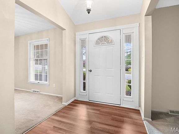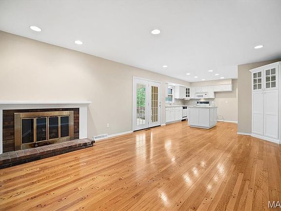 Welcome to this spacious ranch house offering 3 bedrooms, 3 full bathrooms, two car side entry garage & a finished lower level for an estimated total of over 2600 sq ft. It features a center hall floor plan opening to a living room & separate dining room. The flooring is predominately hardwood on the main level & newer LVP on the lower level. The kitchen/breakfast room has lots of cabinets, a center island, built in hutch & walks out to a partially covered deck with newer deck boards. The great room has a gas fireplace (which is non-functioning at this time since it hasn't been used in years & the natural gas line is caped off). For additional living space, the lower level is finished with a huge family room with built in bookcases, a 2nd kitchen, 3 bonus rooms making them available for an office/hobby/sleeping area, walk in cedar closet & full bath. Two unfinished areas are set up for laundry & a workshop. For your outside entertaining there is a large deck with a patio below that views open space and mature trees. Updates include newer paint on both levels, primary bath, lower level LVP & roof. A one year Guard Home Warranty is provided for the buyer. This mid town St Charles house is convenient to Highways 70, 370 & 364 as well as the historical downtown area & other shopping. Be sure to see this well loved house before it is SOLD.