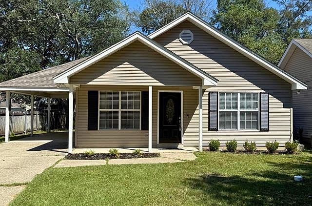 Welcome to this charming 3-bedroom, 2-bath home tucked away in a quiet subdivision off the beaten path. Featuring a new roof, carport, and backyard storage shed, this home offers both comfort and convenience. Inside, the spacious living room boasts vinyl wood flooring, a cozy fireplace, and vaulted ceilings for an inviting atmosphere. The updated kitchen includes granite countertops, stylish backsplash, and all appliances, with an adjoining laundry room and exterior side door leading to the carport. All bedrooms have freshly cleaned carpet. The primary bedroom features tray ceilings, while the primary bathroom offers high ceilings, dual sinks, dual closets, and a large soaking tub area. Fresh modern lighting in most rooms adds to the updated feel. Outdoor space is perfect for relaxation, storage, or play. Pets accepted with approval and pet fee. No vouchers.