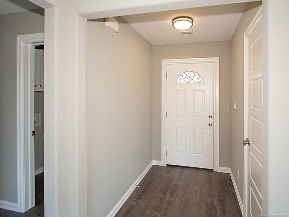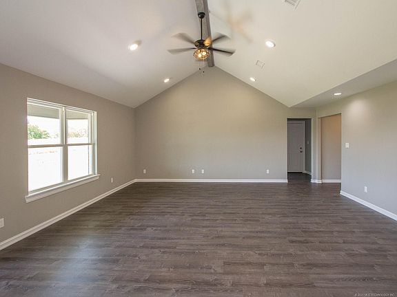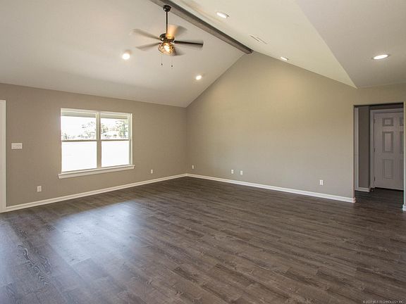 New custom home by established local builder. 3bd/2ba features great room w/vaulted ceiling. Custom kitchen features granite bar and stainless gas range/microwave. Master with private bath has separate walk in closets, soaking tub and separate tiled shower along with double sinks. Bedrooms have walk in closets with built-ins. Hall bath with tub/shower combo. Grey and charcoal color pallete used throughout. Must see home in either Morris or Okmulgee School District.