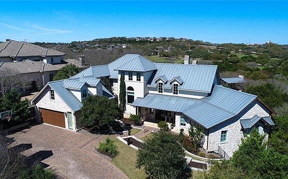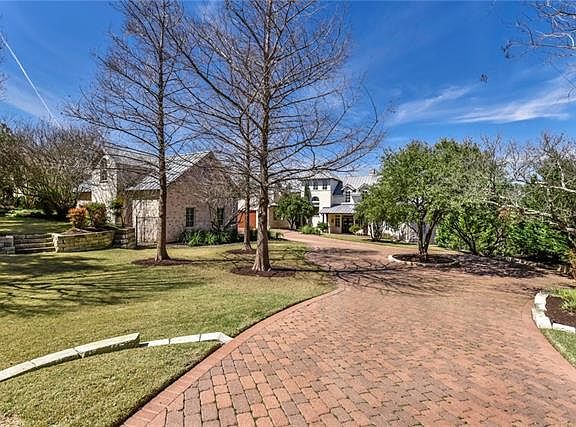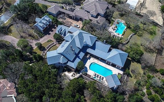 This sprawling Texas hill country estate boasts fabulous entertaining areas which exude warmth, grace and style. Beautiful hardwood floors lead from the formals to the gourmet kitchen/family room to the game room. The lovely master suite is secluded on main level with hill country views, spa bath, and his & her closets. The handsome library/office with floor to ceiling shelving and a cozy fireplace is perfect for reading a book or taking care of business. Guest quarters & exercise area in main home are perfectly secluded w/private entrance, patio & spa. With 5 bedrooms in main home + a detached garage apartment, this home is ready for it all; guests, home office or art/music studio. The beautiful golf course setting with views is a perfect retreat. This classic jewel within the Barton Creek community is tucked in the exclusive cul-de-sac of Portofino Ridge. This home has all the amenities needed to enjoy life in a resort community.
