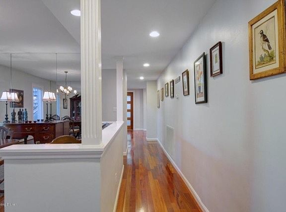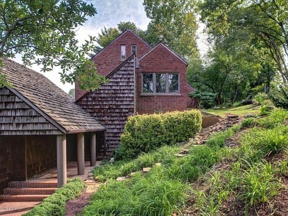 Stunning multi-level contemporary with treetop views from every window. Nearly an acre of privacy on charming cul-de-sac off Lexington Rd. near Cherokee Park. Splendid updated baths and kitchen. First level kitchen with granite countertops opens to family room and looks over organic herb garden. Second level includes enormous great room with fireplace, full length loft with spiral staircase, master bedroom suite with uber stylish dressing/bath area, second large bedroom with en-suite bath and third bedroom opening to large deck surrounded by lush organic garden. Exterior features hand cut cedar shake roof and siding and beautifully maintained mature trees and landscaping. NOTE: Because of the hillside contour of the lot, part of the first floor is technically considered "below grade" finished space by ANSI standards. The total finished square footage of the first and second levels plus second floor loft is 4,103. There is an additional 576 square feet of unfinished space on the first level which is below grade and functions as basement space.