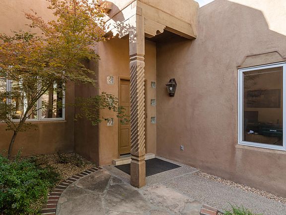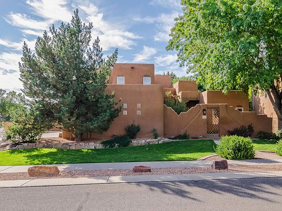 OPEN HOUSE! Sat. 10/10 from 11 to 2. Simply stunning! This gorgeous pueblo-style home is conveniently located in The Meadows on Rio Grande. You'll love the soaring beamed ceilings, light-filled rooms & fabulous features throughout. Enter through a private front courtyard w/beautifully detailed stucco walls. Formal dining room is perfect for entertaining. Large living room overlooks private backyard. Family room has backyard access & cozy corner kiva fireplace. Spacious kitchen w/sunny breakfast room has granite counters, pantry & lots of storage space. Master bedroom opens onto back patio & features a luxurious en-suite bath & large walk-in closet. Upper level has 2 bedrooms, loft & balcony. Beautifully landscaped all around. Delightful corner lot. 3-car garage. An amazing, must-see home!
