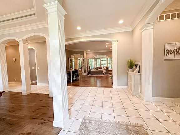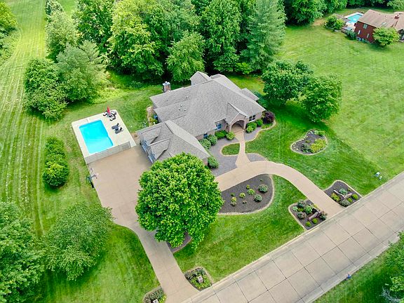 This remarkable westside, open floor plan home offers 5 bedrooms, 3 full/2 half baths, 4 car garage with panoramic views of a wooded 2.5 acre lot that includes lake access with dock and heated inground saltwater pool (installed 2020). The foyer welcomes you to a updated hardwood floored keeping room with a fireplace and built-in shelves with views of the large screened in porch and formal dining room. The upgraded kitchen (2020) and living room with a gas fireplace, built-in shelving and wet bar that is perfect for entertaining! The main floor is a split-level layout between the primary suite, which provides a double sided fireplace and upgraded ensuite bathroom (2023) with granite counters, soaking tub and walk-in tiled shower and across the home provides two bedrooms and an additional two bathrooms. Upstairs is a spacious 4th bedroom with built in dormer seating and an ensuite full bath. There is also a rec room that would be perfect for a media room or workout space which leads into the enormous 5th bedroom with a large closet with additional attic storage. This home boast 10' ceilings with beautiful crown molding, main level laundry, a wood paneled office with coffered ceilings with wet bar, a lake steps away, pool, yard irrigation system, large screened in porch that leads to a paver outdoor patio overlooking the woods. Also, the 6’ tall crawl space is the full footprint of the home which is great for tons of additional storage or a storm shelter! Don't miss out on this westside gem!