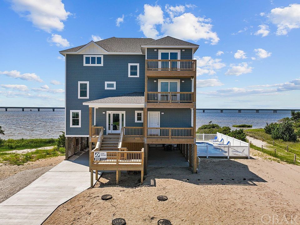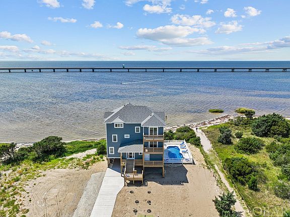 Finished 8 Bedroom New Construction! Soundfront! Close to the Ocean! Sold furnished and rental ready! Near 10% Gross Rental / Purchase Price. A great investment and it's brand new! This Mirlo Beach soundfront has incredible water views and a stunning sandy beach directly adjacent to the property! The sound beach with its calm, shallow and sandy bottom water, is perfect for the family and renters. Private pool, hot tub, theatre room, media room, elevator, recreation room...all the bells and whistles. An amazing home being built by Sandalwood Construction who is a premier builder with over 40 years experience designing and building fine homes on the Outer Banks. This is a show stopper property that is quality built with care and thoughtfulness to details and materials. Some of the many features are LVP flooring throughout the entire home, custom quartz kitchen and bath countertops, GE appliances, custom shaker style cabinets, custom beach trim painted white with 6 panel doors, elevator access to all 4 levels, Certainteed vinyl cedar shake impression siding and many other quality items. The private in-ground pool is elevated and sound side allowing for privacy, views and many relaxing summer afternoons. Take full advantage of the water views from 1,636 square feet of open decking. There is no shortage of great places to stretch out in a hammock or relax in your deck chair as you read your book or have your favorite summer cocktail. This is truly Outer Banks living! Mirlo Beach is perfectly situated for views, privacy and proximity to the ocean. The neighborhood allows for easy beach access as well as community tennis courts. There are water views from almost every room in the home and the elevation of the top level of the home affords unobstructed 180 degree views of the sound. The new bridge routes traffic around Mirlo Beach creating a new and improved 'north end' of Rodanthe that will have no through traffic. No more busy streets to cross when you are going to the beach! This is an incredible location for your dream 2nd home or investment home. Enjoy everything that Hatteras Island has to offer such as pristine uncrowded beaches, world class kite boarding and surfing, fishing and amazing local restaurants and fresh seafood. It is an amazing area and property that is sure to be a top rental performer. Rental projection from Surf or Sound of approximately 175,000. This property is built to a standard for achieving low maintenance for the homeowner. The builder combined roof shingles, exterior siding, composite trim, windows, doors and construction techniques that collectively create a product that will stand up to the elements and be a sustainable home for years to come! Call agent for more details. This is a must see property! Additional photos and information can be found at https://www.surforsound.com/property/1036/