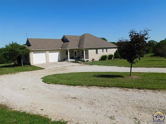 Handy location in a secluded setting with less than 1/4 mile of gravel within 5 mins of Holton. Custom built home by Jerry Lutz with Eubanks Cabinets and open floor plan with great views over a grassy meadow leading to the pond. Natural lighting abounds. His and hers walk in closets. Wrap around deck and walk out basement lend well for entertaining. 4 beds 3 baths. 2 car attached and 24x30 detached garage for the toys. No restrictions. Pond is NOT stocked. Internet by Giant Communications.