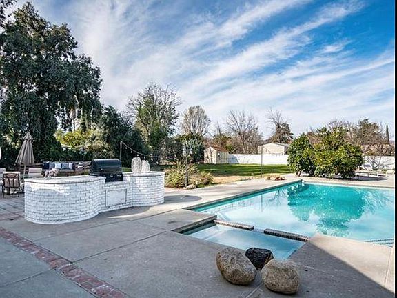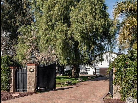 Contemporary paradise on just under an acre. This gated estate begins with an extended paver driveway leading through the peaceful, relaxing front yard. The home is mostly on one level, except for two newly built bedrooms with en-suite baths, a laundry room, and a bonus room. The first floor features an expansive open floor plan with a modern kitchen featuring a center island, dining area, formal living area, TV lounge area, and two master suites with en-suite baths. All bathrooms have been renovated in a contemporary style. The great room and master suite flow into the backyard with a large pool and spa. The 2-bedroom-bath guest house has a kitchen, including a dishwasher. Short-term rentals are acceptable.