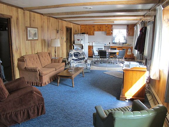Hunt on your own 115 wooded acres, & if that is not enough, hunt on the adjoining State Game Lands. Or, just relax and soak in the view of the surrounding forest & seasonal mountain view, from your 12 x 40 front deck. Totally private wooded mountain setting for this immaculate, comfortable mountain cabin or home, in southern Huntingdon County, near village of Waterfall. Heat with either electric baseboard or wood stove. Currently used as a Hunting camp, but nice enough for a home. Large MBR had been 2 BR, and could be again. Property consists of 3 parcels, one in Huntingdon County, & the cabin parcel & another parcel cross the county line into Fulton County. 3 storage sheds, 2 10x14 & 1 5x10.