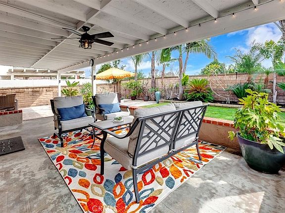 Out in the backyard is where the fun happens! A raised patio that has been plumbed for a spa but is currently perfect for an outdoor seating area, with plenty more room for BBQ area and ping pong table. The patio cover is the length of the entire home with a ceiling fan and outdoor lighting that allows you to be outside during any kind of weather. As you are enjoying the outdoor living space you are surrounded by more tropical landscape and even your own Orange and Lemon tree.