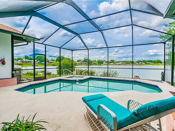 **BRING ALL OFFERS** Relaxing in the living room of your LAKEFRONT, POOL/SPA Home, with BRAND NEW ROOF and Brand NEW POOL CAGE, with amazing views, you think to yourself, "It's so good to be home!" Working from home? Accomplish more in your Oversized home office with a Magical lake View in Lake Padgett Estate East Neighborhood zoned for A+ schools, on a quiet Cul-de-sac & Fishing lake, (Room count:5+). beautifully landscaped front yard with a neat driveway. As you walk into the foyer you'll see this large living room & dining room centered around the fireplace, overlooking the pool/spa area with the beautiful lanai. Notice the Beautiful wood walls that add a natural element to the character of this home. The amazing tiled floor through-out the home & carpeted bedrooms add warmth & cozy feeling. Wooden pillars give just enough separation to the dining & family room. Your kitchen includes dual kitchen sink with all stainless steel appliances & kitchen bar. The Master Bedroom has plenty of room for a king-sized bed & other furnishings. The Master Bathroom has a jetted garden tub with a walk-in California Closet. Two additional bedrooms offer space for your family or a guest bedroom. Lake Padget Estates East: Deed restricted community offers a private clubhouse with bar & lounge, public library, baseball, football & tennis courts, Olympic-size pool & gymnasium & running track. Tampa Premium Outlets are 7 miles away. All it needs is your personal updates, care & love! Let's make it your own home today!