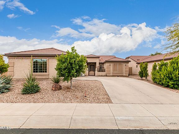 You have found the home you've been searching for. It sits on a corner lot and it features a spacious open floor plan. When you walk up to the front courtyard you will fall in the love with the privacy and mountain views. Upon entering the home you will notice the pride of ownership, tile floors in the main living area and carpet in the bedrooms. The kitchen features granite countertops, maple cabinets with crown molding, smooth top electric stove, and a large pantry. There are plantation shutters on the windows, cabinets in the garage, ceiling fans, a water softener, and OWNED SOLAR! The backyard is perfect for relaxing in the salt water pool or sitting under the covered patio. There is desert landscape in the front and citrus tree in back. This home has it all!