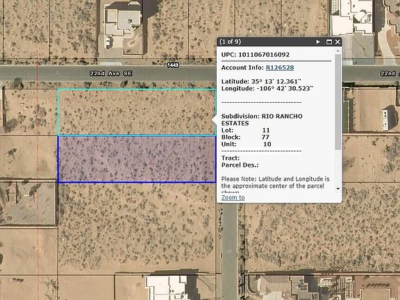 Discover a prime opportunity with this 1/2-acre vacant land in the rapidly growing Rio Rancho area, just one block from Albuquerque City limits. Located minutes from Rust Medical Center, gas stations, and local restaurants, this highly sought-after property features paved road access and close proximity to utilities. Perfect for custom home development, this parcel offers both convenience and potential in a thriving community. Don't miss out on this exceptional investment opportunity! Seller will consider offers with loans involved as long as the buyer is paying all lender fees. Lot 11 is also available from the same seller at the same price.