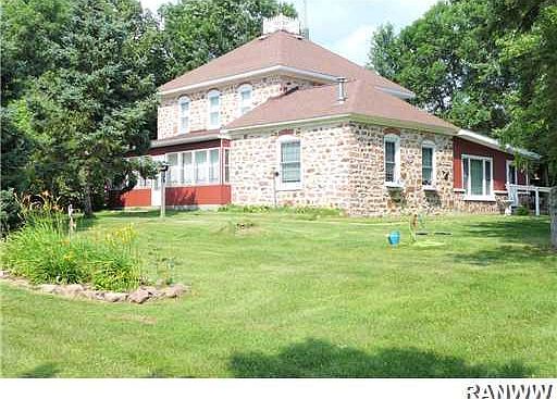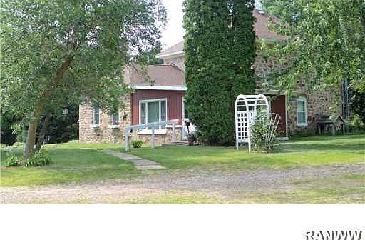 Gorgeous setting minutes from Rice Lake on the banks of the Red Cedar River. One of a kind Rosestone home. Home features 2 large living areas, dining room w/gas freestanding fireplace, main floor laundry with bath. Main floor master Bdr w/bath. Upstairs features 3 bdrms and a 1/2 bath. Many built-ins throughout the home. Enjoy the summer days and nights in the 3 season porch. Large steel shed with 3 garage stalls along with a fully finished heated garden shed. Great private setting to escape to.