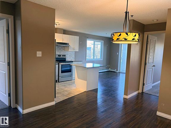 This beautiful 2 bed 2 bath 870 sq ft. condo in the desirable neighborhood of Wild Rose is a must see! The open concept kitchen, dining room and living room are bright with lots of windows and natural light and feature laminate flooring and linoleum tile. The kitchen has white cabinetry with tiled backsplash and stainless steel appliances throughout. Primary bdrm features carpet flooring, generous walk- in closet, and 4 pc en suite bath. This condo also has another well sized carpeted bdrm, and a 4pc bath that has convenient in- suite laundry. This condo also features a spacious storage closet, nice sized balcony to enjoy the fresh air, an assigned parking stall and plenty of additional parking around the building. The location offers easy access to parks and green space with walking trails along Mill Creek as well as shopping centres, schools, public transit and quick access to Whitemud Dr and the Henday. Don’t miss out on this perfect condo!