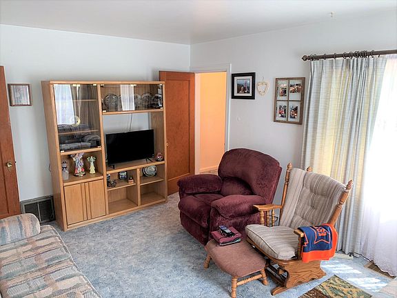 Charming Ranch Home! The main level features 3 bedrooms, 1 bath, living room, bright kitchen and dining room with gas fireplace and large window. Lower level offers 2 non-conforming bedrooms and laundry/utility room. Central air. Detached 2 car garage with alley access, fenced yard, front porch and metal siding.
