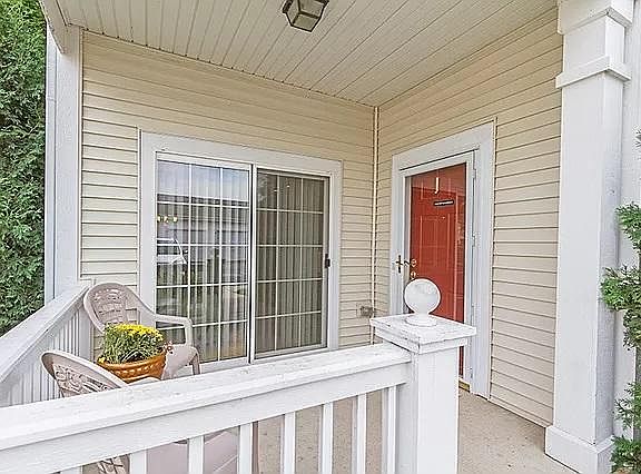 Cambridge Lakes, Main Level Condo. Large living room opens to private porch. Kitchen with all appliances including microwave, breakfast bar and separate dining space. 2 Spacious bedrooms. Master bedroom includes walk-in closet and private full bath with dual vanity, soaking tub, and separate shower. Includes a 1 car garage and a parking spot directly in front of the unit. Access to pool, clubhouse, basic cable tv, water, garbage, and exterior maintenance/landscaping.