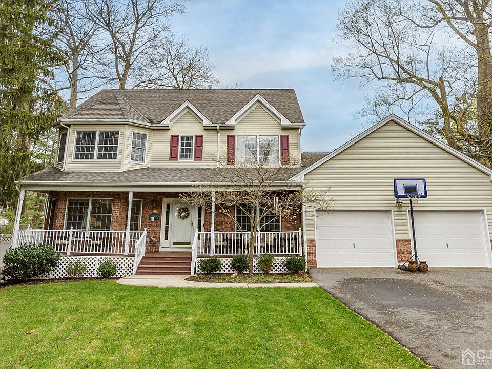 Pack your bags and move right in! This beautiful home is meticulously maintained inside and out with instant curb appeal and lots of privacy. The classic rocking chair front porch is so welcoming before stepping inside to the sun soaked Living Room that looks right into the Dining Room. The neutral tones, natural sunlight, chair rail and crown moldings add such charm and elegance here. Large EIK has great storage, SS appliances, Water Filter and gorgeous Hardwood floors. Expanded Family Room is completely opened up with raised cathedral ceilings and the stone fireplace is stunning. French Doors lead to an office space. Main level laundry is so convenient and the half bath finishes this level. All 4 Bedrooms are a great size, including the Primary that features 2 WIC and gorgeous Ensuite. 2nd full bath has an updated look, too! Fully finished basement with both inside & outside entry is a real bonus here! Tons of space for entertaining, Kitchenette, a 3rd Full Bath and amazing workshop room. 2 car attached garage. Extensive backyard is fenced in for your privacy. Massive rear deck is perfect to enjoy this Spring and Summer! Storage shed for your equipment. Great location, too! Very close proximity to all schools & 2 blocks from the bus line to NYC, a Commuter's delight! This could be the one. Come and see today! *Open House Sun 4/24 from 1-4pm*