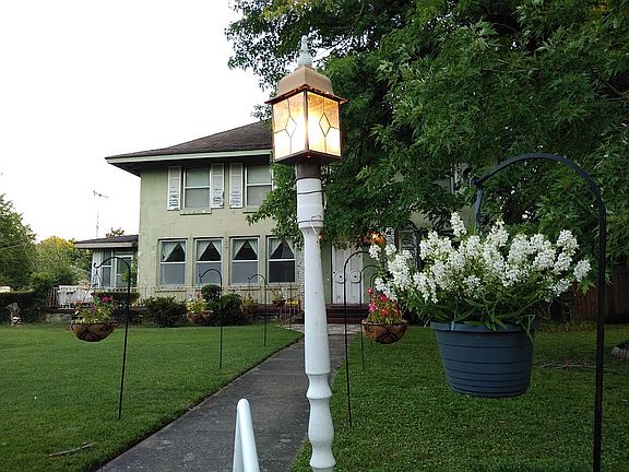 Beautiful 1940's home with hardwood floors! Formal dining, breakfast room and kitchen with large walk in pantry. Large sunroom, formal living room, music room, plus very large add on which could be used as a den, extra living space or gameroom. Lots of lovely woodwork and built in bookshelves throughout the house! Beautiful natural light. Working gas fireplaces in dining room and living room. One full bath downstairs, one full bath and two 1/2 baths upstairs. Master suite with sitting room and 1/2 bath. Mother-in-law suite with 1/2 bath. Large fenced in yard with the house on two corner lots! Detached two car garage and extra house in the back yard that could be used for hobbies, storage, in-law suite or a workshop. Must see!