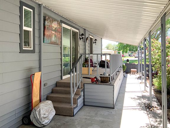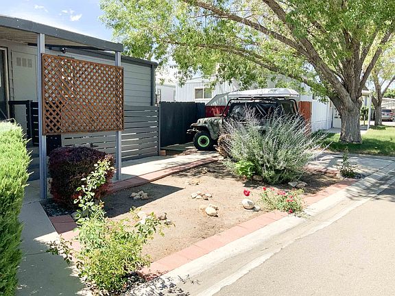 This 2 bedroom, 2 bath well maintained double-wide mobile home in the Highland's Park Family section is a great opportunity! With wood laminate flooring, updated kitchen and baths, this home has plenty of space with an open floor plan. Laundry room includes the washer & dryer. Home has central A/C, swamp cooler, & forced air propane heat. New Milgard double-pane windows & slider installed. Outside is a large storage shed, covered car-port, and an additional drive way for your extra car! Situated on a corner lot, you can't beat the location; right across from the Rec Center!