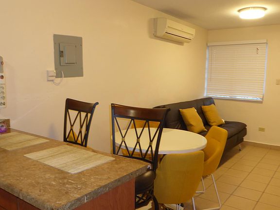 For rent nights and weekends. With over 700 Sqft of rooming space, Los Caobos apartments invites up to 6 guests to comfortably enjoy their stay in scenic Ponce; either while here in business or vacationing thru beautiful Puerto Rico. Nested in the Second Floor of our property, this unit rewards you with a spacious terrace with lots of space for relaxation; it also hosts the laundry area. The master bedroom has a new queen size bed. The second room has two twin size bed that is perfect for when children or friends come along for the trip. The living has air conditioner with a futon and Netflix account in the TV. The kitchen is fully equipped with brand new fridge. Perfect for family trips or groups of 4. Ponce Vacation Rentals