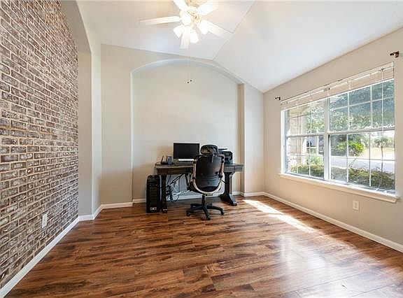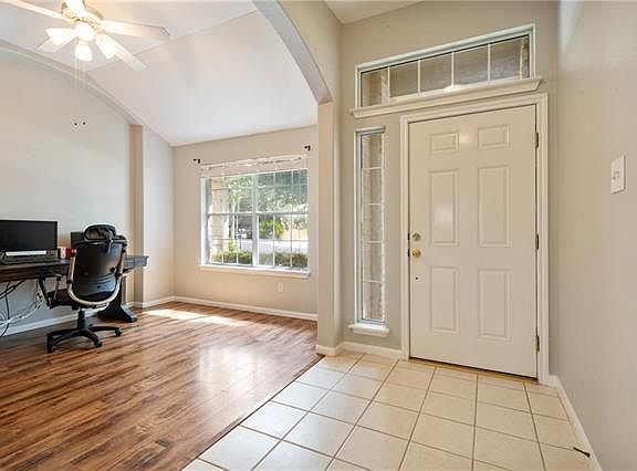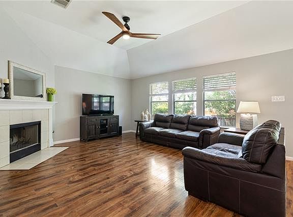 Walk into spacious open floorplan featuring a family room with gas fireplace, opens to kitchen and casual dining areas. Study and secondary bedrooms at front of home. Owners retreat features large walk in closet, double vanity, garden tub with separate walk in shower. Features include stainless steel appliances, walk in pantry, covered patio with trees for privacy, full irrigation, water softener and no carpet. HVAC replaced 2015, roof 2017, water heater 2018, interior painted in Oct. 2018.